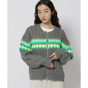 カーディガン ネオンノルディックZIPカーディガン レディース