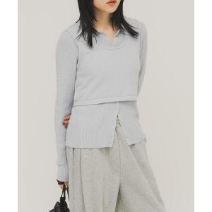 ニット セーター 2wayシャツレイヤードニットトップス レディース