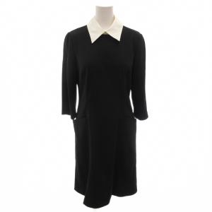 フォクシーニューヨーク FOXEY NEW YORK ワンピース 40 黒 ブラック バイカラー 襟付き 七分袖 ロング /FF ■GY62 レディース