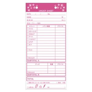 [ネイルサロン顧客管理]ネイルサロン伝票/オーダーシート(ピンク)【CAST】100枚つづり