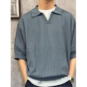 セーター ニット 「BACK NUMBER」透かし編みニットスキッパーポロシャツ メンズ