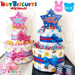 オムツケーキ ミキハウス 出産祝い 男の子 女の子 ホットビスケッツ ガーゼタオル 日本製