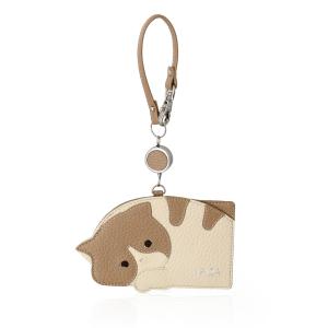 イビサ公式 猫 ねこ リール付き パスケース 本革 レザー ハンドメイド ギフト プレゼント かわいい レディース Animada