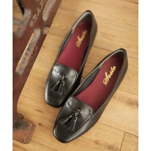 パンプス ミドルヒールポインテッドトゥローファーパンプス