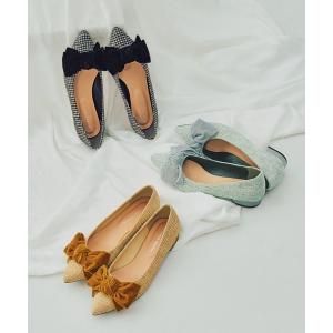 パンプス 2025秋冬新作 ベロアリボン×ツイードフラットパンプス/51302