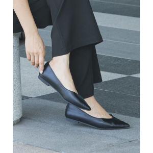 パンプス Vカット ストラップ フラットシューズ 撥水