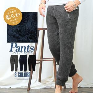 ボア パンツ メンズ ボトムス 無地 ルームウェア 暖か イージーパンツ 総ボア シャギーボア ビター系