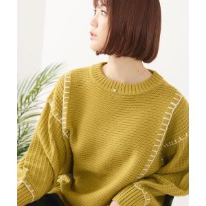 ニット セーター 「C-FORT POINT/フォートポイント」配色ブランケットステッチプルオーバー レディース