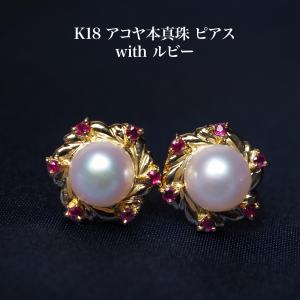 K18 アコヤ本真珠 ルビー フラワー ピアス あこやパール 18金イエローゴールド スタッド 大ぶり 大きめ かわいい ギフト プレゼント 普段使い カジュアル 日本製