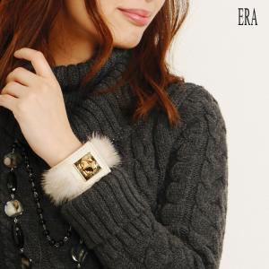 [ERA] ミンク ファー レザー ワイド ブレスレット [ネコポスで送料無料] ゴールド金具 / レディースファー アクセサリー ブランド