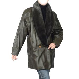 ファー/[わけあり]ラム コート ミンク トリミング ダークカーキ