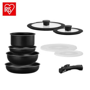 フライパン 9点セット フライパンセット IH/ガス火対応 ダイヤモンドコートパン NTF-SEI9 ブラックメタリック アイリスオーヤマ