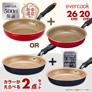 【2026年福袋】【スポンジおまけ付!】evercook フライパン お買い得セット 500日保証 選べる2点セット ドウシシャ 26cm+20cm レッド ネイビー