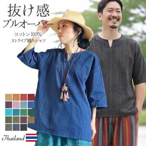 送料無料 シャツ トップス 半袖 五分袖 メンズ レディース エスニック アジアン ファッション 春 夏 大きめ 大きいサイズ カジュアル ナチュラル 綿 カラフル