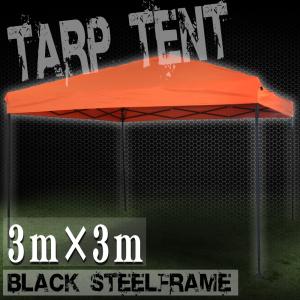 テント タープテント 3m×3m ワンタッチ 折りたたみ 自立式 正方形 オレンジ 高さ調節 収納バック付 ビーチ 日よけ BAA0103I
