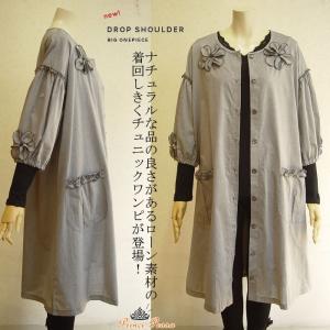 プリンチペッサ princi pessa お花ローンシャンブレー前開きチュニックワンピ 綿100% 洗える 日本製 レディース チュニック プルオーバー ワンピース