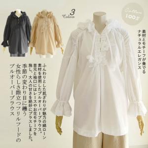ベルパーチ Belpaci お花レース&フリルプルオーバーブラウス 日本製 洗える 綿100% レディース プルオーバー オーバー ブラウス 黒 白 ベージュ 春 夏 秋