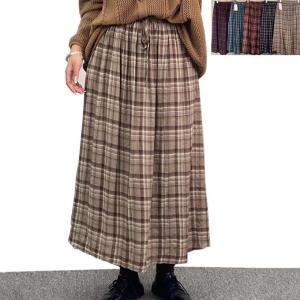 タータンチェック ロングスカート レディース ボトムス チェック ギャザー ミモレ フレアー スカート やや薄手 スラブ 綿 綿ローン裏地 コットン ボリュームシル