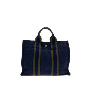 エルメス HERMES フールトゥ PM キャンバス トートバッグ ハンドバッグ ネイビー レディース