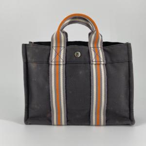 HERMES エルメス フールトゥPM トート ハンドバッグ キャンバス ブラック レディース/352906【中古】