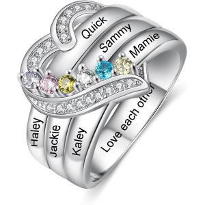 【並行輸入品】名前入りアニバーサリーリング レディース スターリングシルバージュエリー 1~8個の模造誕生石付き プロミスリング 母 おばあちゃん 母