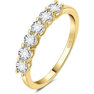【並行輸入品】JewelryPalace クラシック 0.6カラット 本物のモアッサナイト 結婚指輪 レディース ハーフエタニティ 14K イエ
