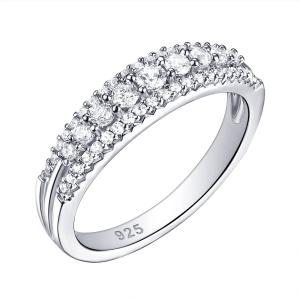 【並行輸入品】Wuziwen ホワイトラウンド キュービックジルコニア エタニティリング 925スターリングシルバー プロミスウェディングバンド
