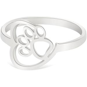 【並行輸入品】かわいい子犬の足跡プリントリング ステンレススチール レディース ガールズ メンズ かわいい 動物 犬 ペット リング プロミス ラブ