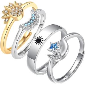 【並行輸入品】天体太陽と月のリングセット 4個パック 太陽/ブルームーンリング 14Kゴールド/シルバーメッキ 重ね付け可能なリング プロミスフレンド