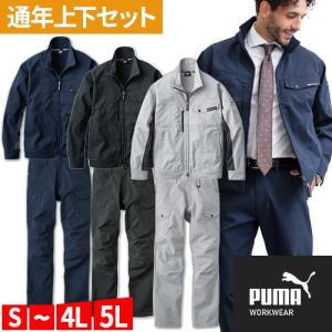 作業ウェア PUMA プーマ 作業着 上下セット 秋冬 ストレッチ ジャケット カーゴパンツ メンズ 大きいサイズ PW-4011A PW-4015A