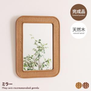 ミラー 鏡 ラタン インテリア アート 雑貨 壁掛け 玄関 リビング ドレッサーミラー メイク ヘアセット 飛散防止 大きめ 幅45 天然木