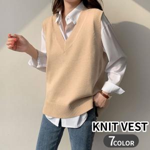 ベスト ニット レディース 女性用 トップス Vネック プルオーバー 無地 セーター 体型カバー ゆったり おしゃれ シンプル カジュアル 可愛い お