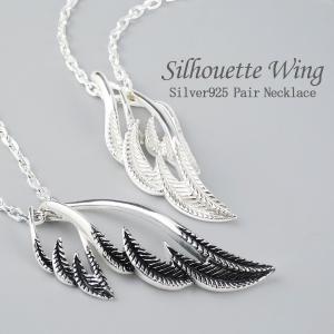 ペアネックレス シルバー 翼 羽 透かし ダブル ウィング お揃い カップル ペアルック 2本セット おしゃれ 20 30 40代 プレゼント