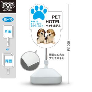 スタンド看板 ペットホテル PET HOTEL トリミング グルーミング 宿泊 犬の写真 ブルー 屋外使用可 Y-10237-1