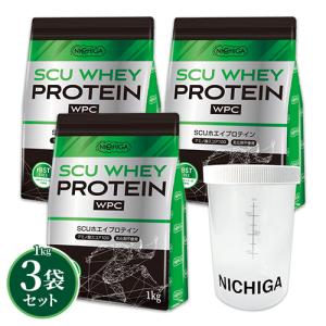 <シェイカー セット> SCU ホエイプロテイン 1kg×3袋 〈rBSTホルモン剤不使用〉 甘味料不使用 着色料・香料・保存料無添加 NICHIGA(ニチガ) TK2