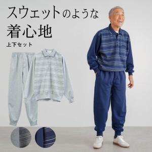 シニア 服 80代 70代 60代 パジャマ メンズ 高齢者 紳士服 男性 おじいちゃん 父 誕生日 プレゼント 薄手スウェット 長袖ポロと裾リブパンツの上下ホームウェア