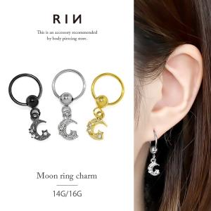 ボディピアス ヘリックス リング 軟骨 14G 16G ビーズリング 月 宇宙 ムーン かわいい フープ 揺れる 片耳用