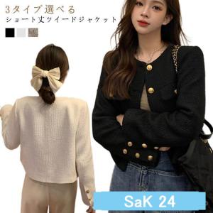 ツイードジャケット レディース 40代 長袖ノーカラージャケット 黒ショット丈ツイードコート 春コートアウター 秋服 大人韓国風 通勤OL 入学式 卒業式30代 50代
