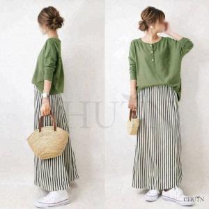 春セットアップtシャツトップス+スカート aライトスカートアウター ウエストゴムスカート夏服 同窓会 入学式卒業式マキシスカート 韓国風 シンプル 大人ママ服