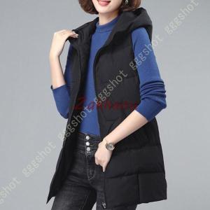 中綿ベスト ロング丈ベスト レディース フード付き ノースリーブ トップス ダウンベスト チョッキ 20代 30代 40代 大きいサイズ OL 通勤 ママ アウター 着痩せ