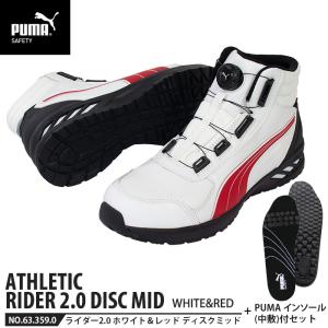 安全靴 ライダー2.0 ホワイト&レッド 26.5cm ディスク ミッドカット 中敷 インソール付 PUMA(プーマ) 63.359.0&20.450.0