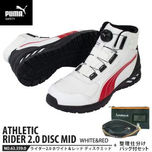 安全靴 ライダー2.0 ホワイト&レッド 26.5cm ディスク ミッドカット 整理仕分けバッグ付 PUMA(プーマ) 63.359.0