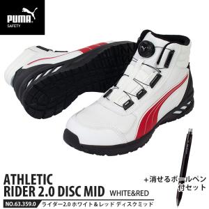 安全靴 ライダー2.0 ホワイト&レッド 26.5cm ディスク ミッドカット 消せるボールペン付 PUMA(プーマ) 63.359.0