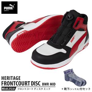 安全靴 フロントコート ブラック&ホワイト&レッド 26.5cm ディスク ミッドカット 靴下 ソックス付 PUMA(プーマ) 63.212.0