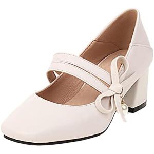 パンプス レディース スクエアトゥ 蝶結び ミドルヒール ストラップパンプス オフィス 通勤 通学 パーティー 入学式 入園式 婦人靴