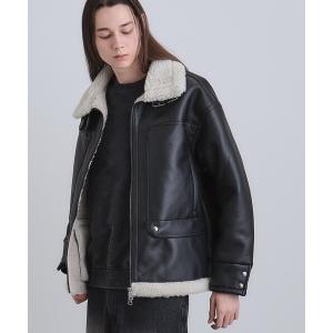 ムートンコート ボアコート 「 2color 」フェイクレザーベルテッドボアムートンジャケット / fake leather belted boa