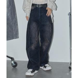ジーンズ デニム デニムパンツ ヴィンテージライク フロッキーデニム カーブワイドパンツ レディース メンズ