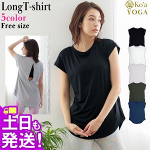 接触冷感 春 レディース サマー 20代 ロング丈 ヨガウェア Tシャツ トップス 夏 半袖 消臭 ヨガウェア 体型カバー ピラティス ウェア 吸水