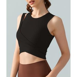 スポーツブラ ソリッドカラー フェイクレイヤード リブ ヨガ ハーフトップ