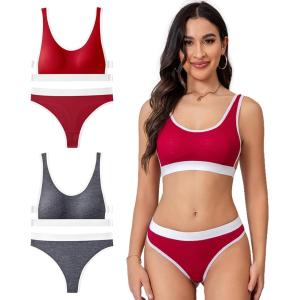 スポーツブラ 上下 セット セクシー Tバック フリーサイズ 2枚 下着 ノンワイヤー レッド(レッドブラック,  Free Size) スポーツブラ 上下 セット セクシー Tバック フリーサイズ 2枚 下着 ノンワイヤー レッド(レッドブラック,  Free Size)3,480円 送料無料
